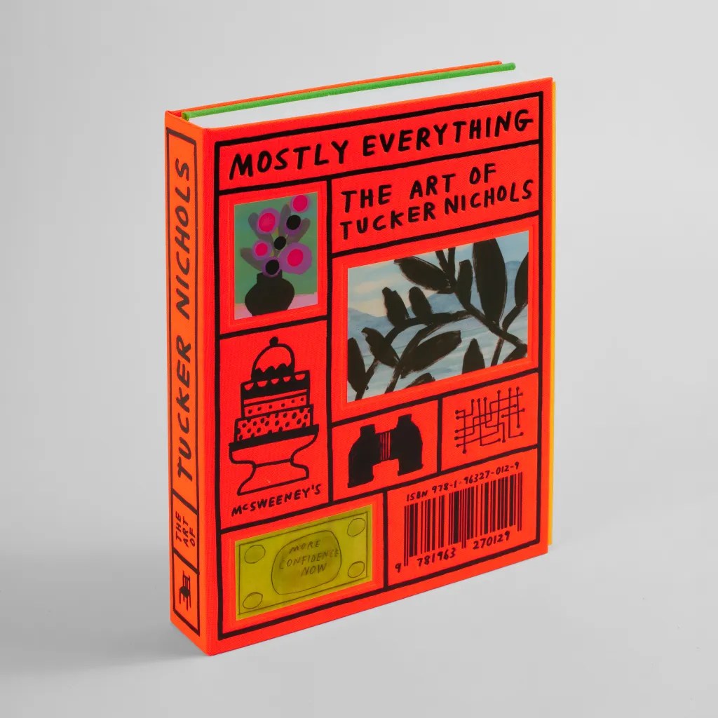 The first career-spanning book from Bay Area artist Tucker Nichols, Mostly Everything: The Art of Tucker Nichols attempts to capture, in one extravagant volume, decades of the artist’s varied work, from drawings with words, drawings without words, paintings and sculpture, to large- and medium-scale public works, editorial illustrations, picture books, doodles, notes, charts, lists and more. Bound in a luxurious, hard-to-describe double-hardcover book, with two spines and two overlapping cover boards, and clocking in at over 300 full-color pages, Mostly Everything: The Art of Tucker Nichols contains a lifetime of making that can’t quite be contained.
