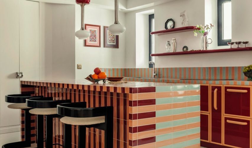 A striped kitchen sets the tone for a colourful design scheme within this Parisian apartment, which was renovated by local studio Atelier HA. The 60-square-metre …